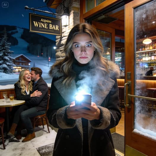 “Right now,” I admitted. “At a bar in Aspen. She’s with a guy.”