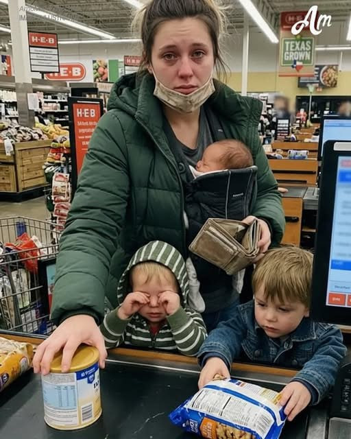 She was trying to count the coins in her wallet, her face flushed and her hands trembling as she held a container of formula.
