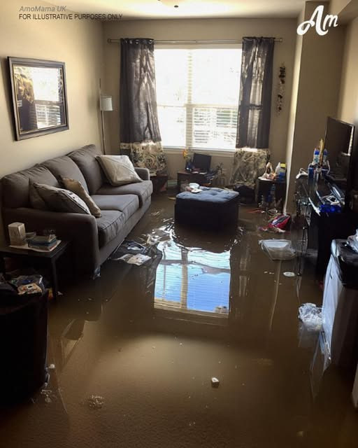 Water. Cold water. It had crept across the entire living room floor. The brand-new carpet we’d laid with our own hands was soaked through. Boxes of things we hadn’t even unpacked yet were half-submerged. The wallpaper we’d argued so much over had bubbled at the seams.