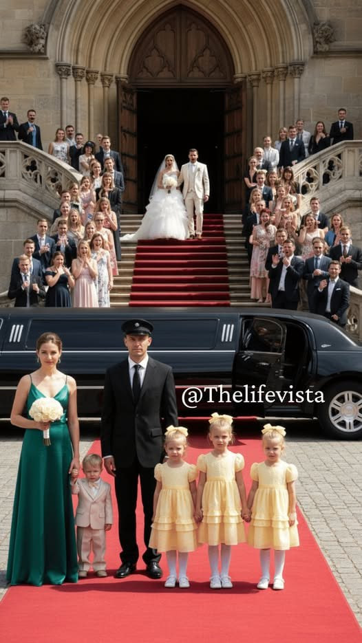 A black limousine pulled up to the curb. The chauffeur stepped out, opened the door, and three identical little girls hopped onto the red carpet, their yellow dresses catching the light. They held hands, giggling softly, their golden curls bouncing as they walked. A collective gasp swept the crowd.