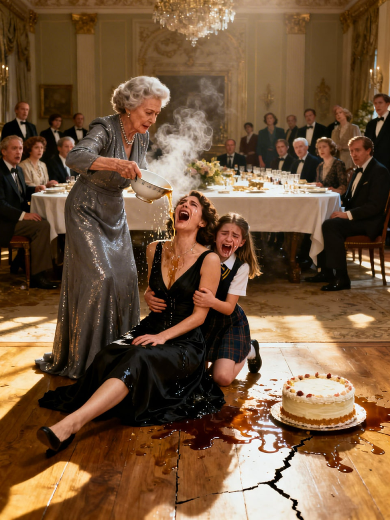 My mother lunged toward us, slipping slightly on the wet floor where sauce and wine and broken glass had turned the dining room into a hazard. She caught herself on the table edge, knocking over another dish. Something green—beans, maybe—spilled and slid into the mess, making the smell worse.